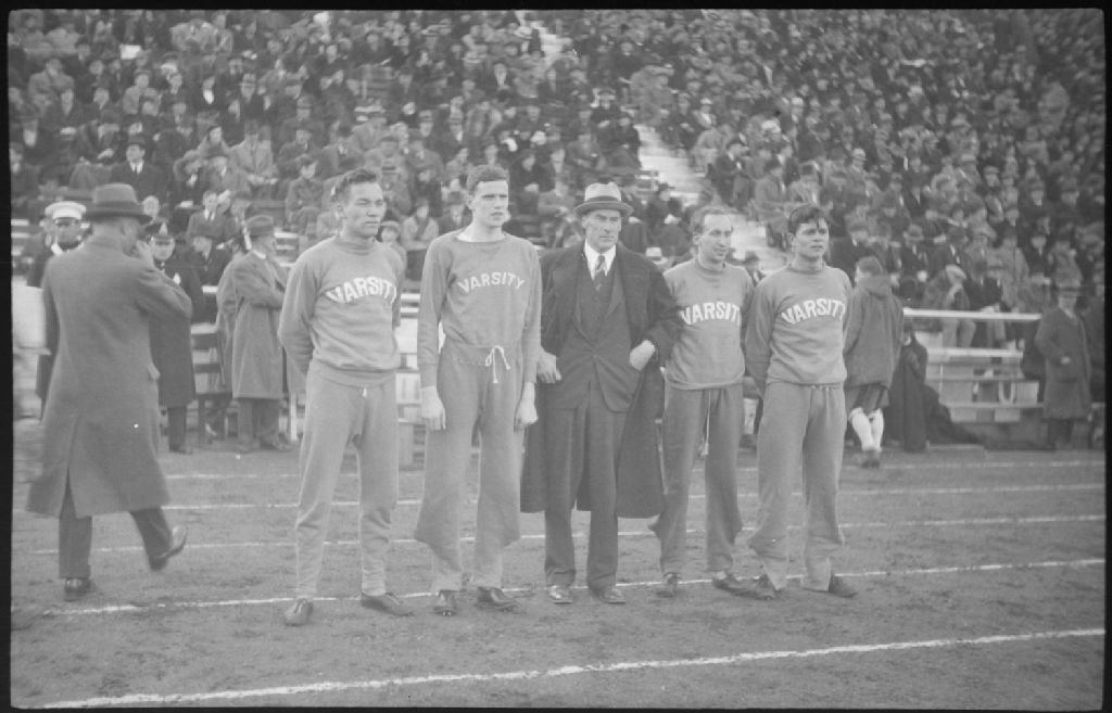 Sport Photography. Varsity Team. Relay Race. Coons, O'Connor, McHenry, Conway at Molson Stadium Montreal, 24 octobre 1936, Archives nationales à Montréal, Fonds Conrad Poirier, (06M,P48,S1,P1010), Poirier, Conrad.