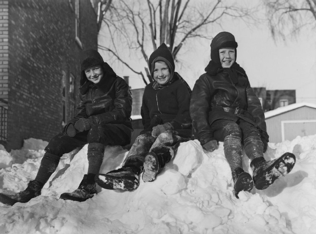 Trois enfants destinés à l'adoption sont assis sur une congère