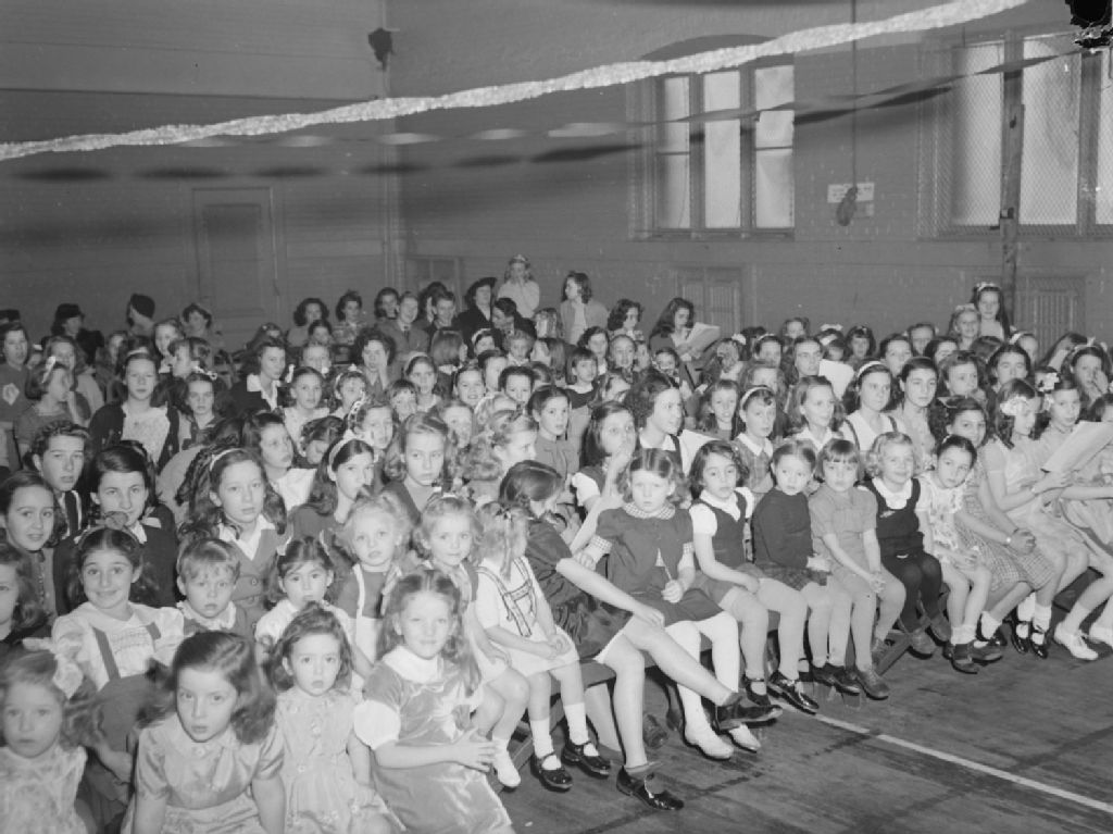 Nous voyons de nombreux participants, surtout des fillettes, à la partie de Noël de la North End Young Men's Christian Association (Y.M.C.A.) de Montréal