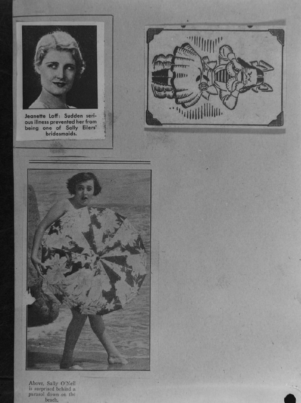 Nous voyons les actrices Jeanette Loff et Sally O'Neil et un dessin d'une fillette faisant la grimace