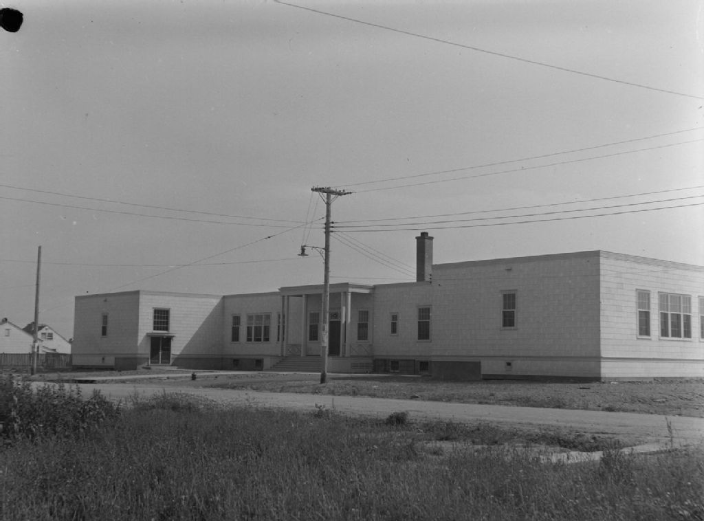 Nous voyons un édifice administratif du village de 400 maisons destinées aux familles des ouvriers employés aux usines de guerre de «Noorduyn Aviation Ltd» situées chemin Bois-Franc à ville Saint-Laurent