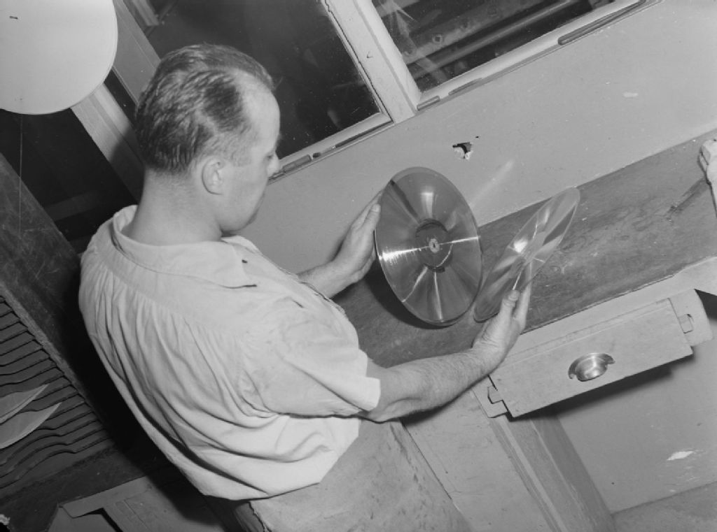 Feature. Separating the Metal Mould from the Original Master Disc, 3 octobre 1944, Archives nationales à Montréal, Fonds Conrad Poirier, (06M,P48,S1,P10522), Poirier, Conrad.
