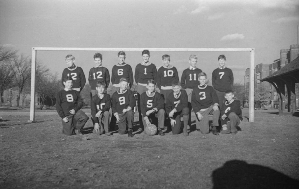 Nous voyons les joueurs d'une équipe de soccer de la «Westmount Intermediate School» devant le filet