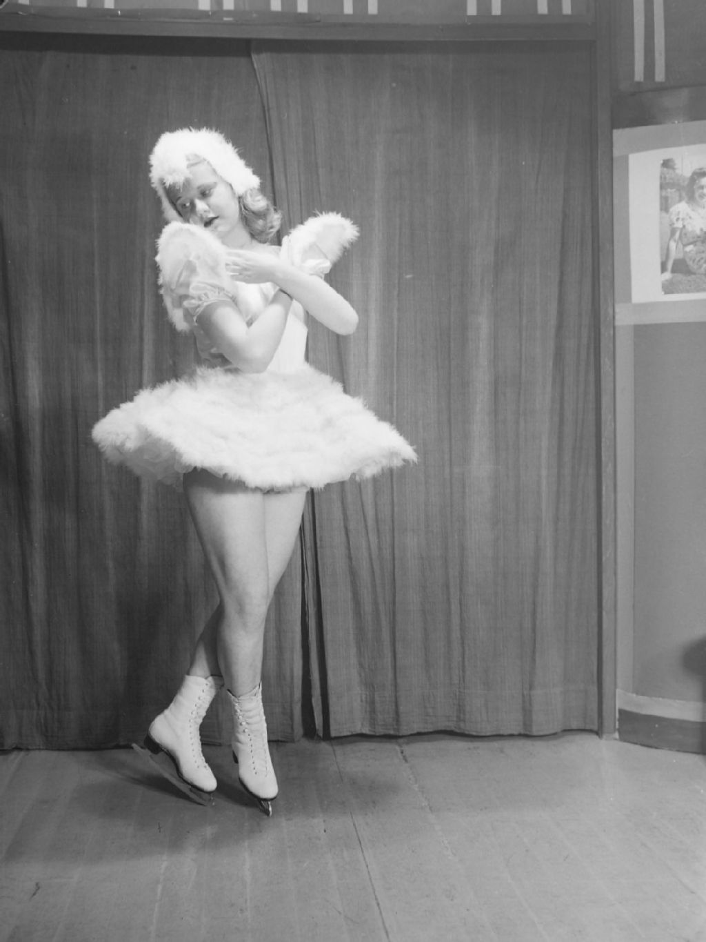 Skating. Lorraine Lanthier, 11 avril 1944, Archives nationales à Montréal, Fonds Conrad Poirier, (06M,P48,S1,P10940), Poirier, Conrad.