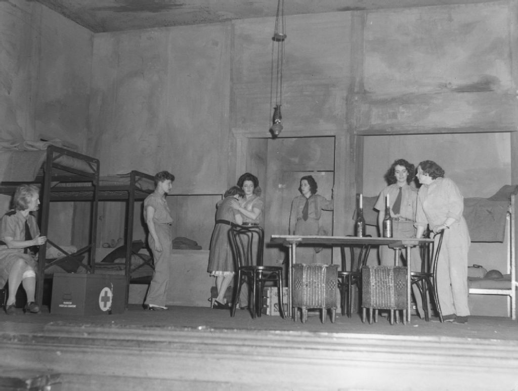 Nous voyons une représentation de la pièce de théâtre «Cry Havoc» par le Catholic Westmount Women's Club. Des comédiennes, en uniforme militaire, évoluent dans un décor d'infirmerie de la Croix-Rouge où nous remarquons plusieurs lits superposés