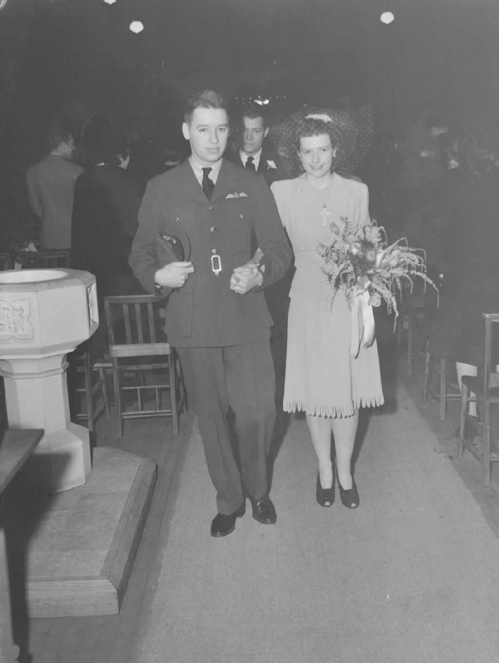 Wedding. Phyllis Ruth Robinson : P.O. Arthur Wilson Smith RCAF, 19 janvier 1944, Archives nationales à Montréal, Fonds Conrad Poirier, (06M,P48,S1,P11224), Poirier, Conrad.