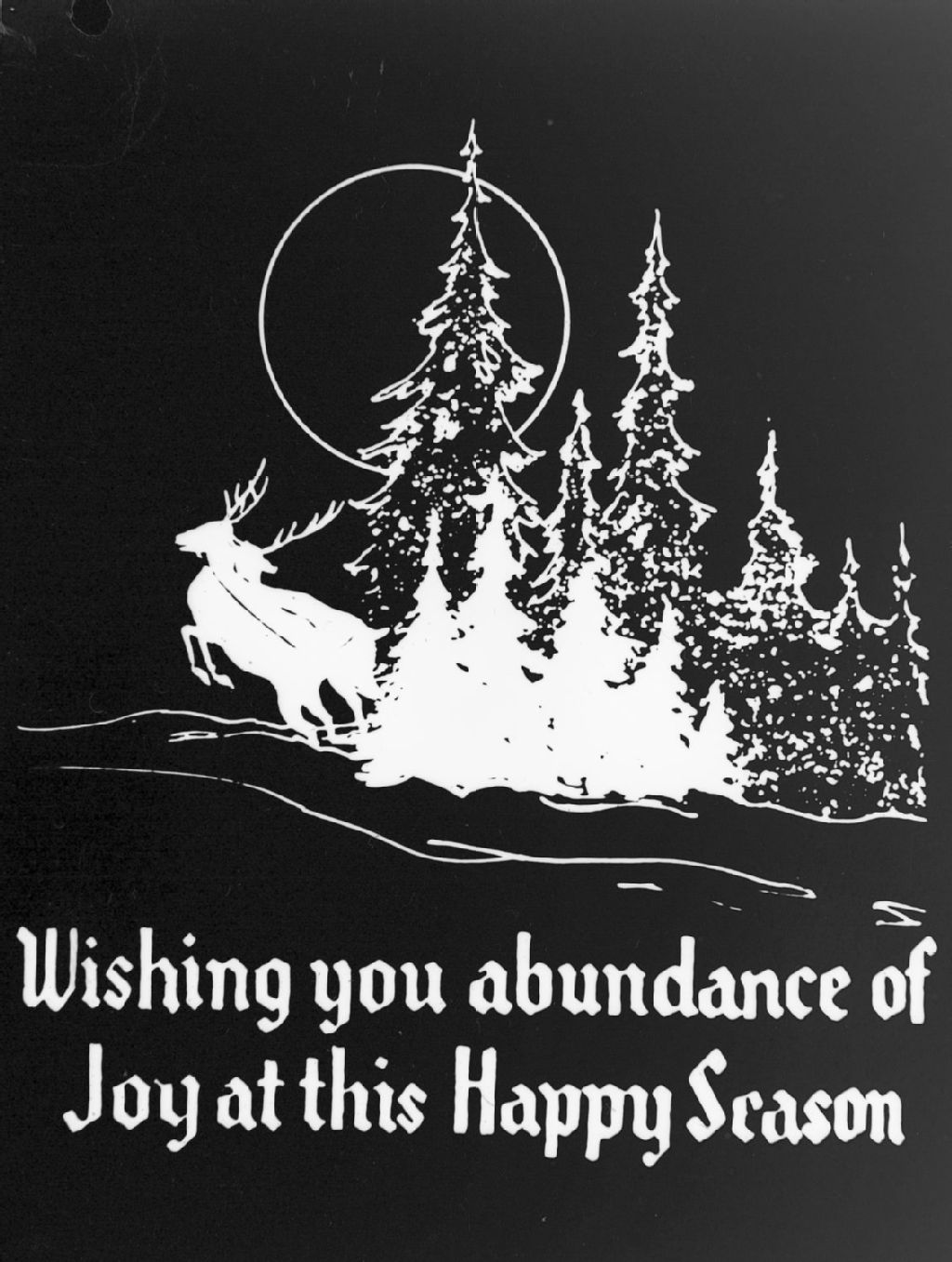 Christmas Card Design. Wishing you Abundance of Joy at this Happy Season, 30 novembre 1945, Archives nationales à Montréal, Fonds Conrad Poirier, (06M,P48,S1,P11480), Poirier, Conrad.