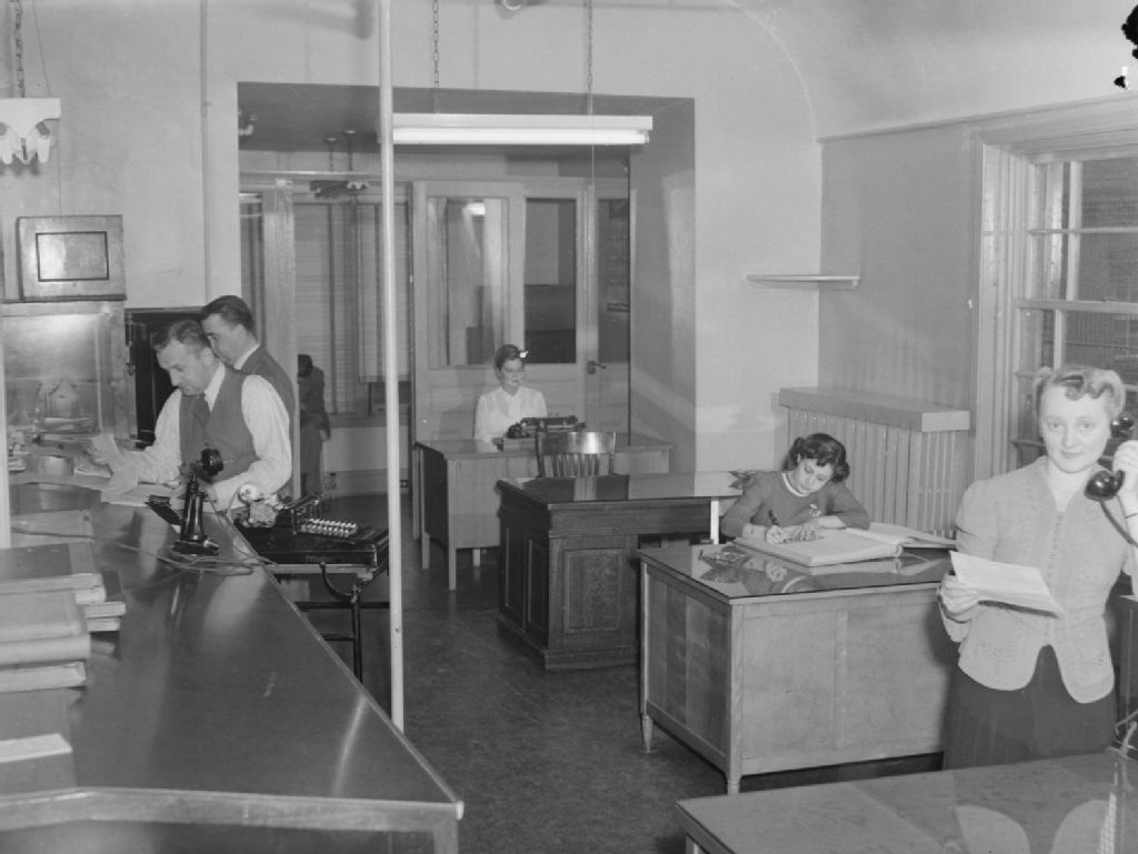 Nous voyons des employés dans des bureaux du journal Le Samedi situé rue de Bullion à Montréal