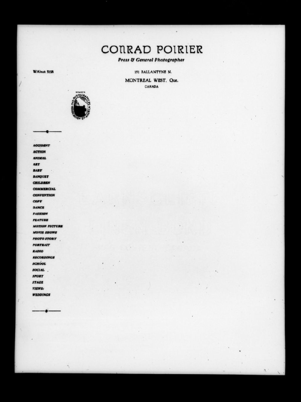 Nous voyons le papier à lettres du photographe Conrad Poirier