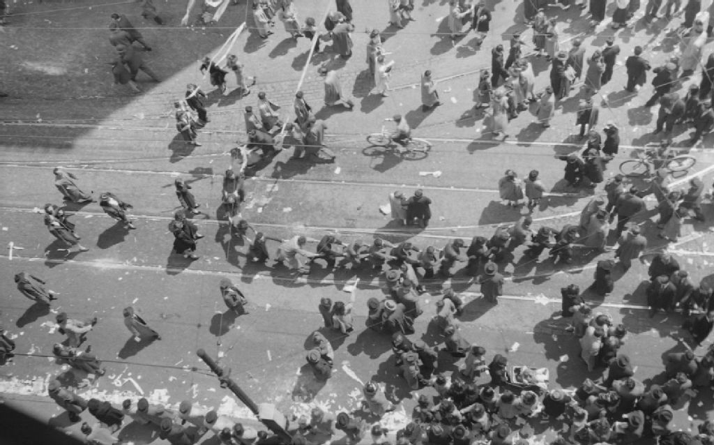 Feature. V.E. Day, 7 mai 1945, Archives nationales à Montréal, Fonds Conrad Poirier, (06M,P48,S1,P11805), Poirier, Conrad.