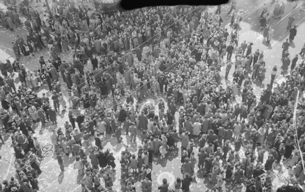 Feature. V.E. Day, 7 mai 1945, Archives nationales à Montréal, Fonds Conrad Poirier, (06M,P48,S1,P11809), Poirier, Conrad.