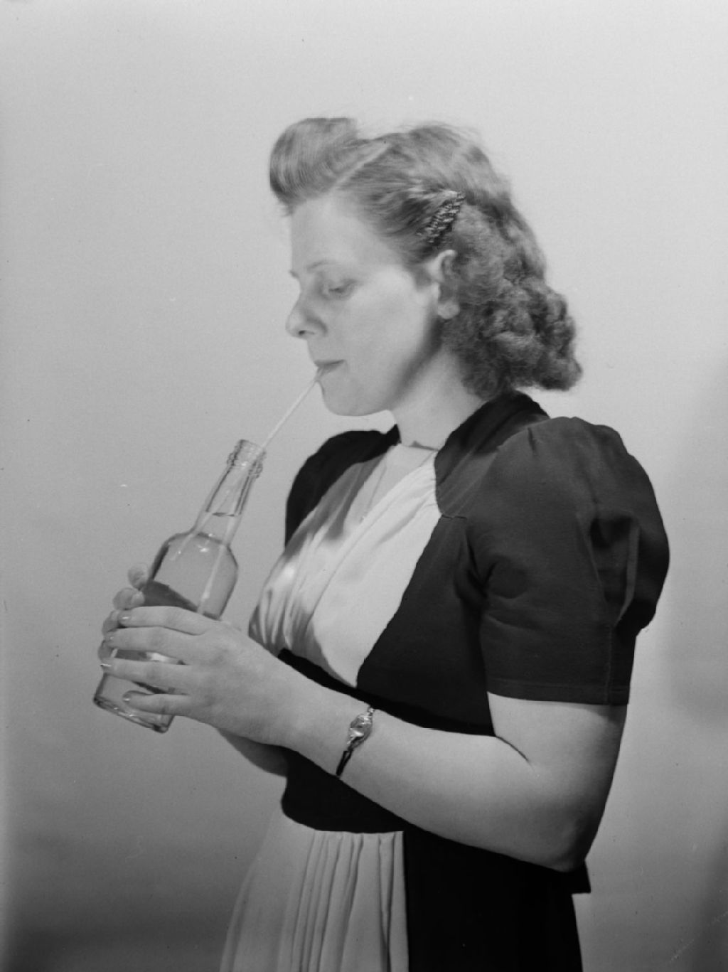 Feature. Scientific Stunts : Try to Drink : Fernande, 18 mai 1945, Archives nationales à Montréal, Fonds Conrad Poirier, (06M,P48,S1,P11810), Poirier, Conrad.