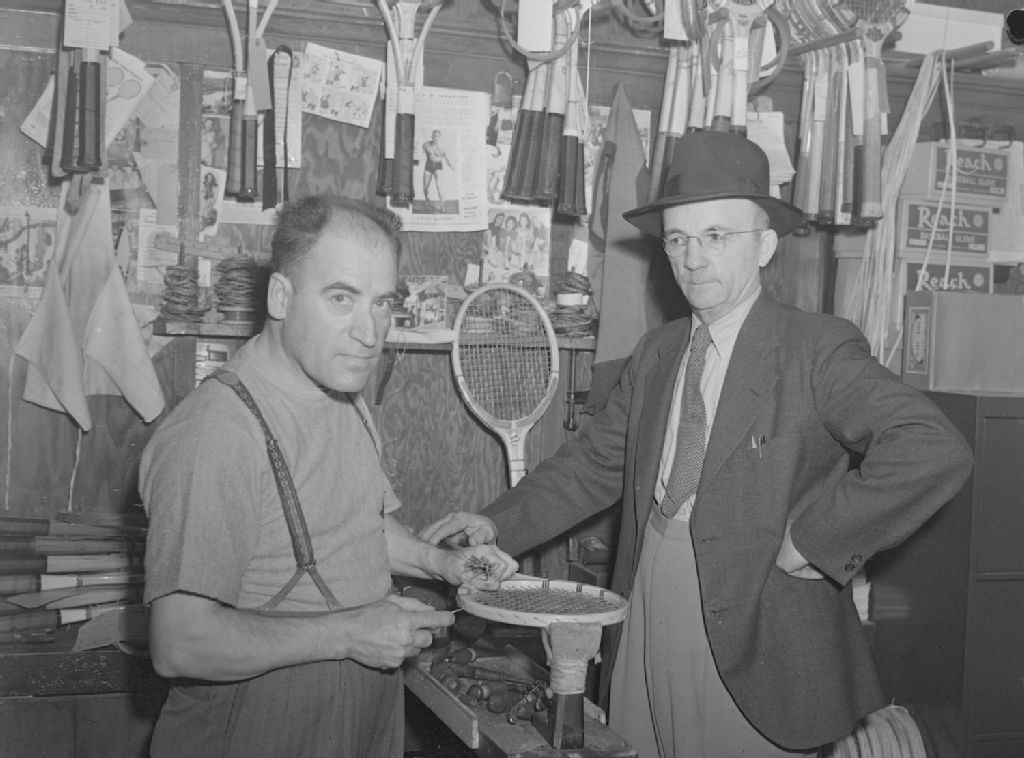 Feature. Tennis Racquet Restringing, 26 juin 1945, Archives nationales à Montréal, Fonds Conrad Poirier, (06M,P48,S1,P11856), Poirier, Conrad.
