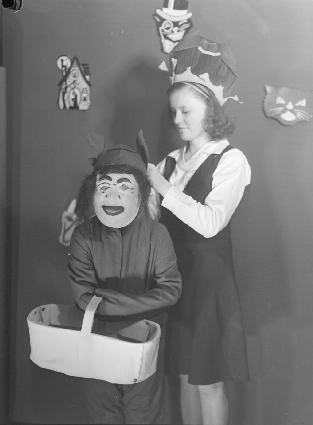 Hallowe'en. Hallowe'en Scene, 2 octobre 1945, Archives nationales à Montréal, Fonds Conrad Poirier, (06M,P48,S1,P12082), Poirier, Conrad.