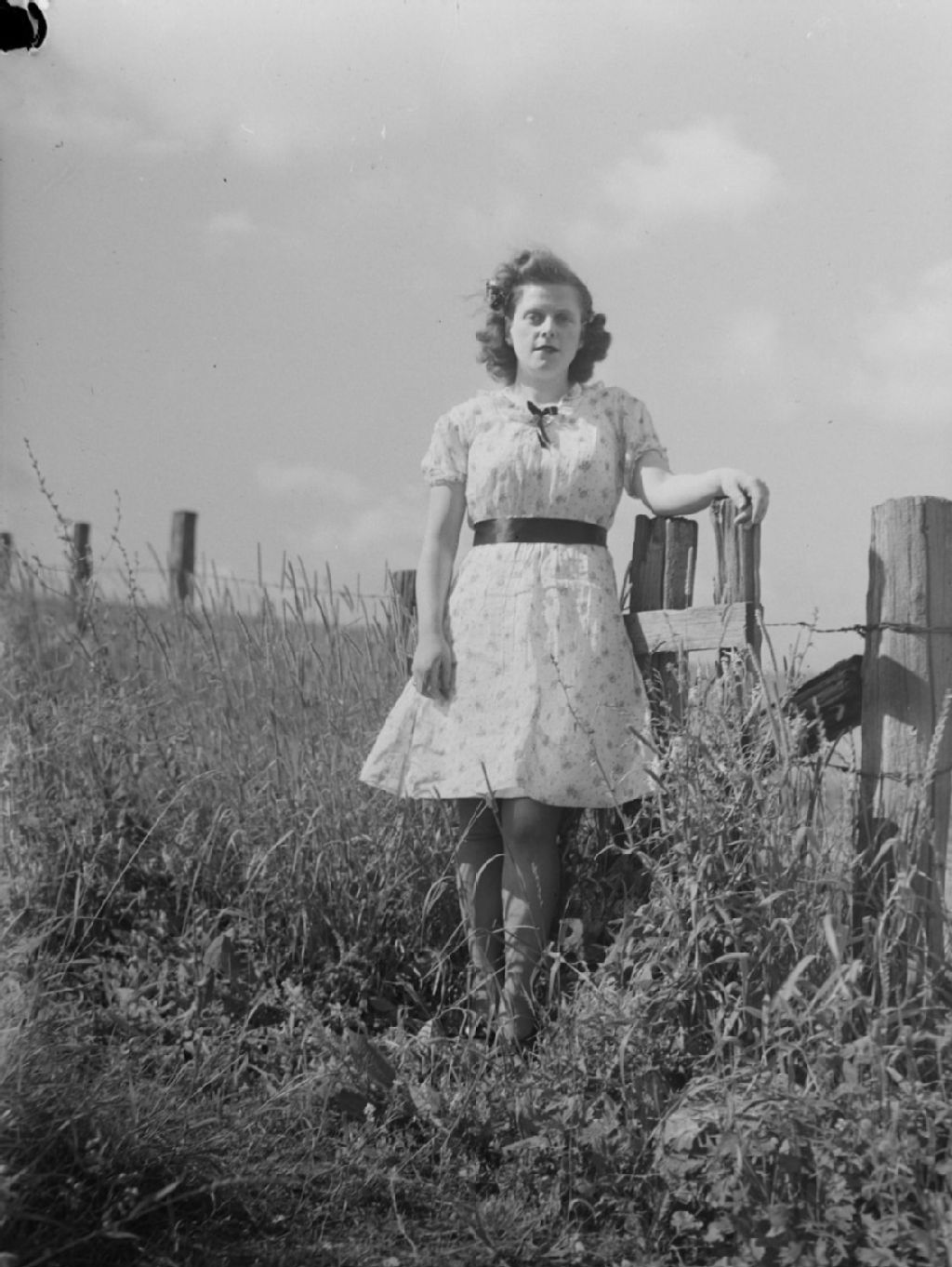 Fernande Lambert est debout dans un champ près d'une clôture de fil de fer barbelé