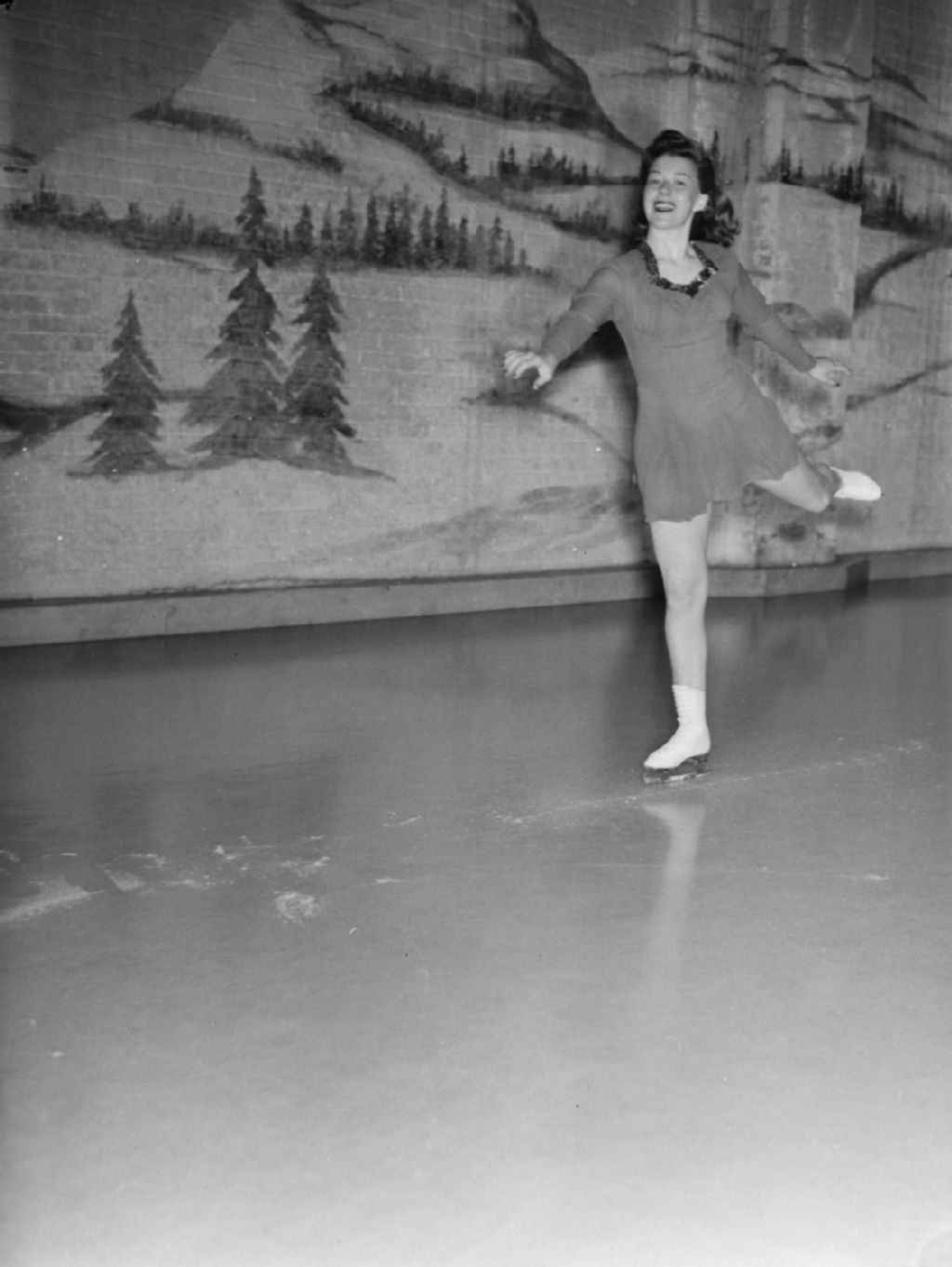 Skating. Suzanne Thouin, 14 février 1945, Archives nationales à Montréal, Fonds Conrad Poirier, (06M,P48,S1,P12481), Poirier, Conrad.