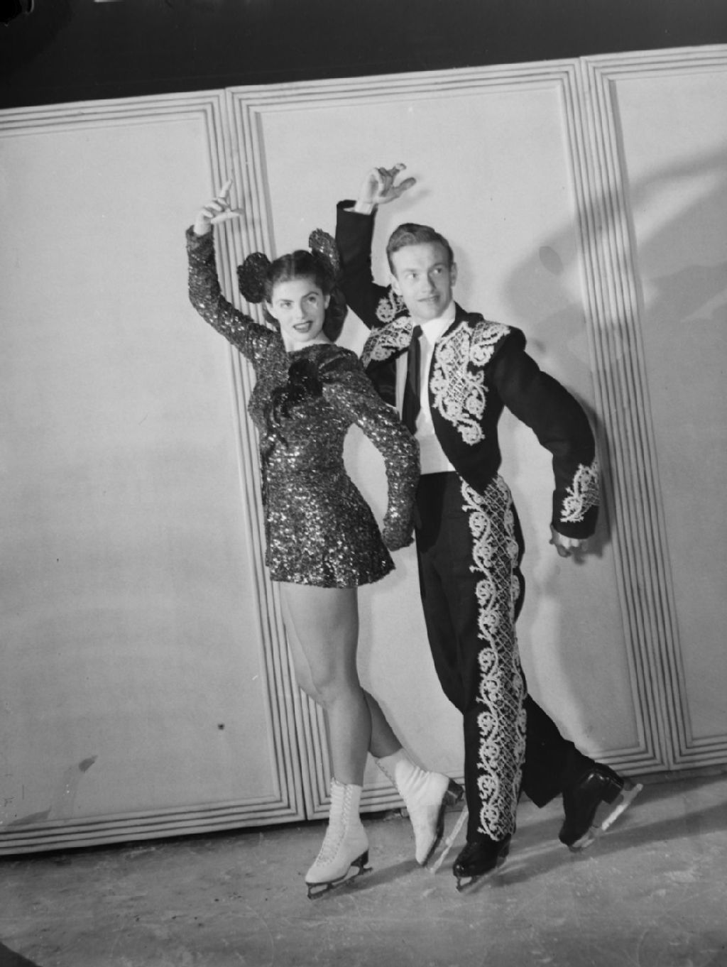 Skating. Ariane & Bruce Clark, 26 octobre 1945, Archives nationales à Montréal, Fonds Conrad Poirier, (06M,P48,S1,P12484), Poirier, Conrad.