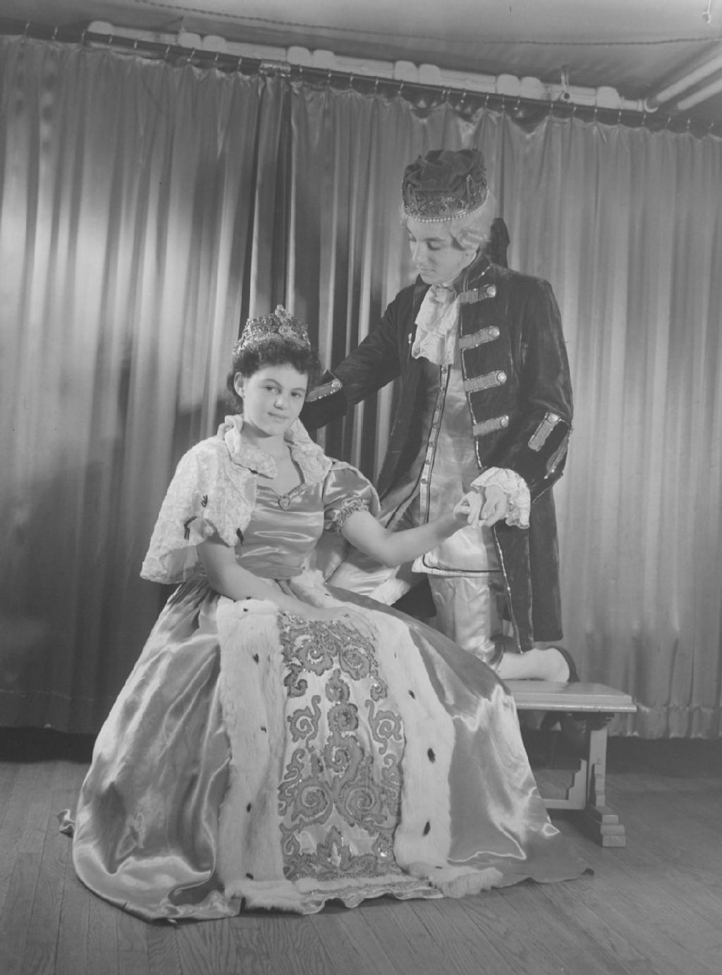 Nous voyons le roi et la reine avec leur couronne lors de la représentation de la pièce de théâtre pour enfants La belle au bois dormant d'après le conte de Charles Perrault