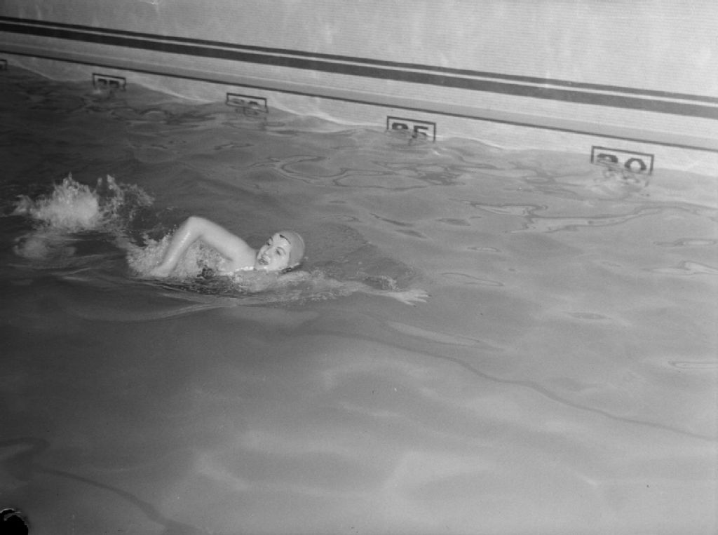 Swimming. Billei Dempsey, 5 novembre 1945, Archives nationales à Montréal, Fonds Conrad Poirier, (06M,P48,S1,P12598), Poirier, Conrad.