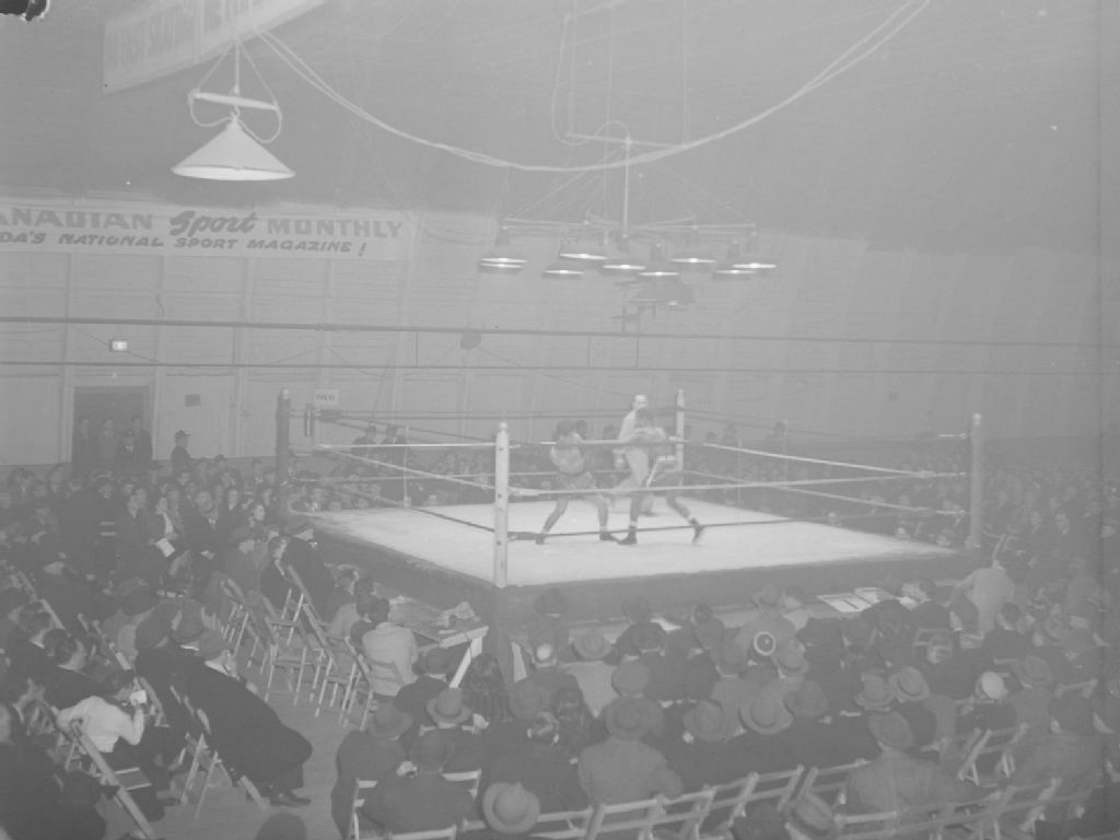 Boxing. At the Coliseum, 18 février 1946, Archives nationales à Montréal, Fonds Conrad Poirier, (06M,P48,S1,P12834), Poirier, Conrad.