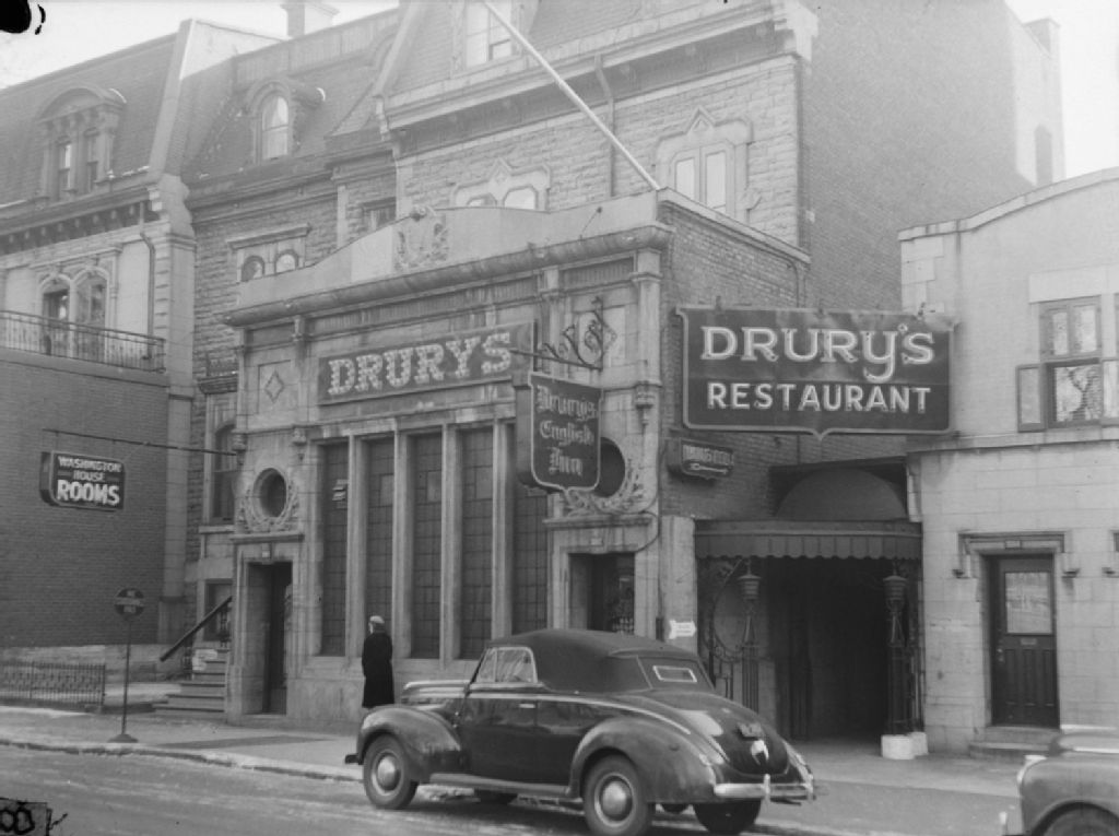 Nous voyons l'extérieur du restaurant Drury's de la rue Osborne à Montréal