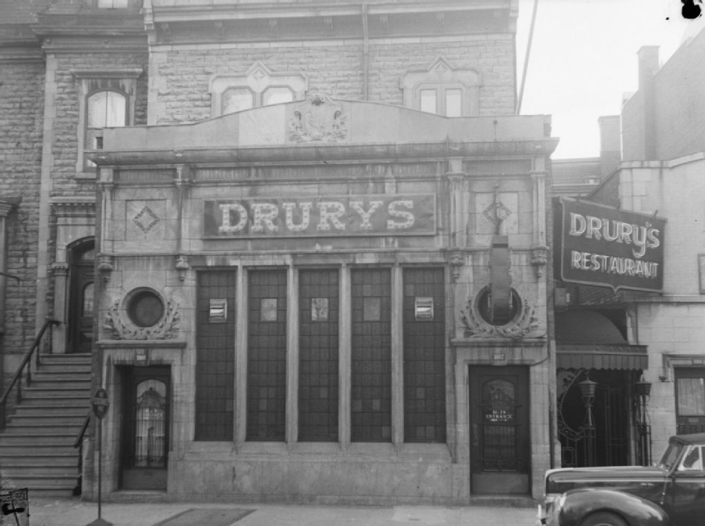 Nous voyons l'extérieur du restaurant Drury's de la rue Osborne à Montréal