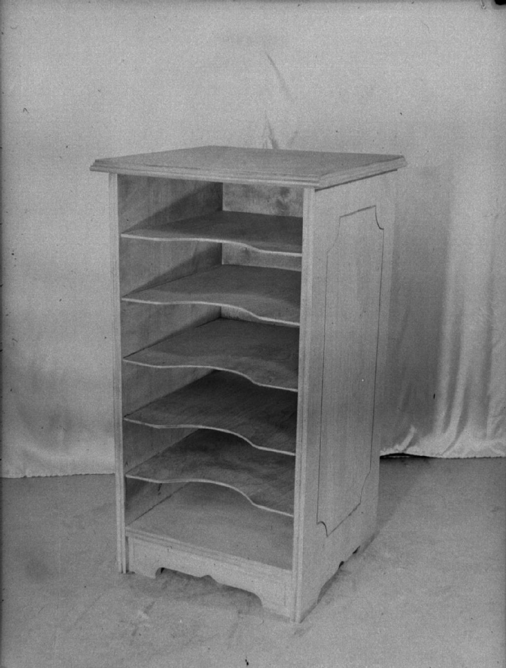 Nous voyons un meuble de rangement à plusieurs tablettes manufacturé chez American Frame Mfg Co de l'avenue Henri-Julien à Montréal