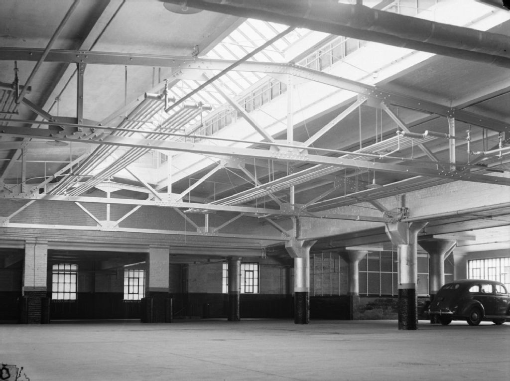Nous voyons une voiture stationnée dans le garage intérieur de l'édifice Bell Telephone