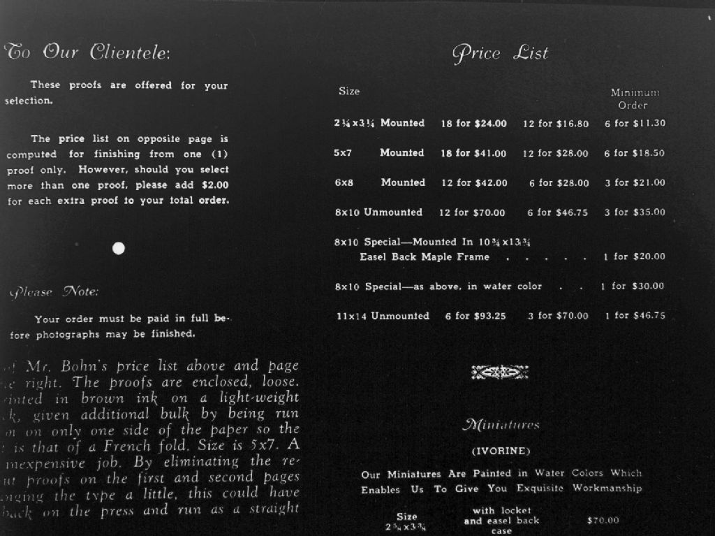 Copy. Proof Price List