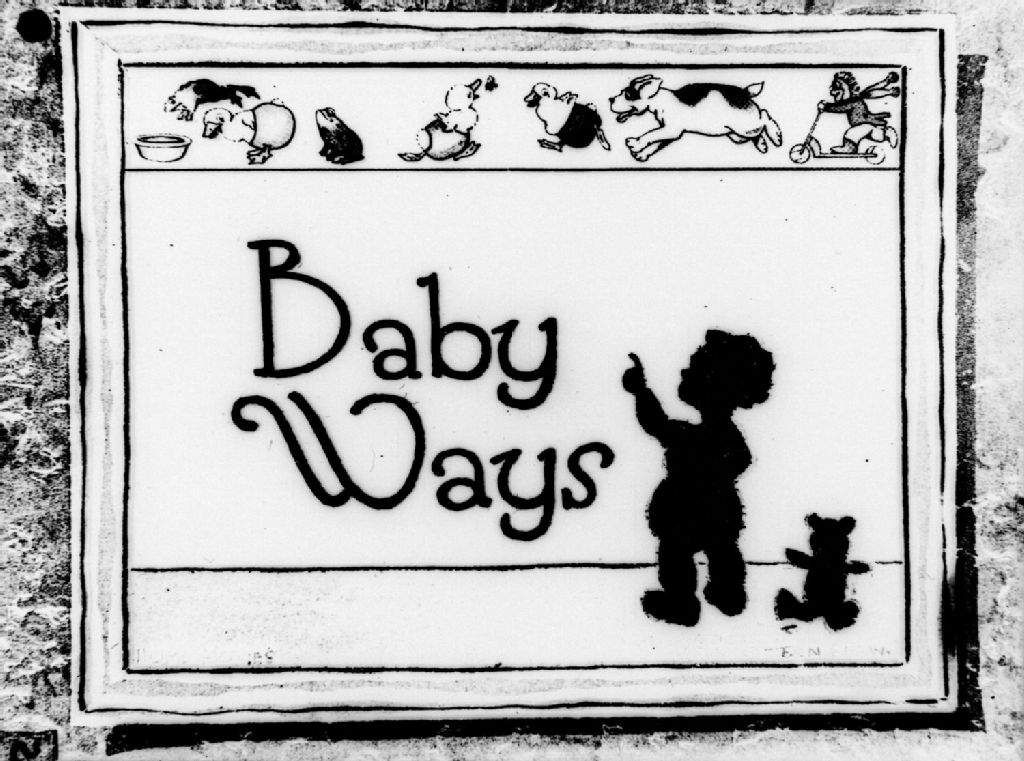 Nous voyons le titre «Baby Ways» illustré d'un bébé avec son ourson