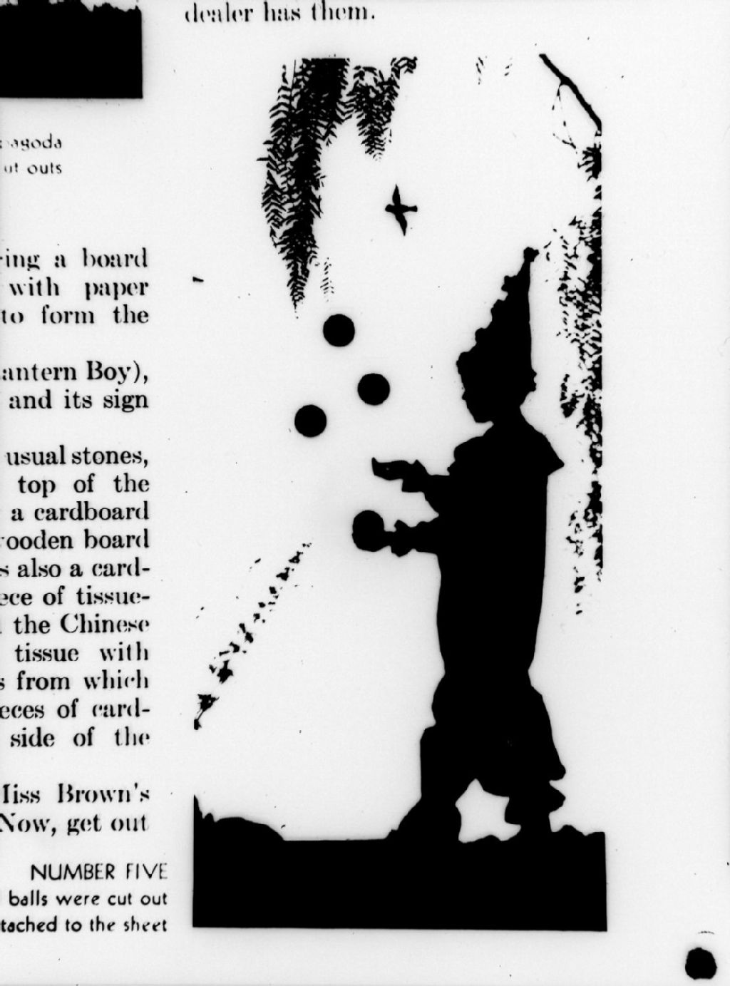 Nous voyons la silhouette d'un enfant habillé en pierrot jonglant avec des balles
