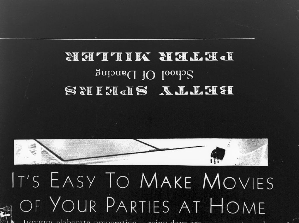 Nous voyons l'identification de l'école de danse Betty Speirs et Peter Miller et un texte sur la facilité de projeter des films d'amateur à la maison
