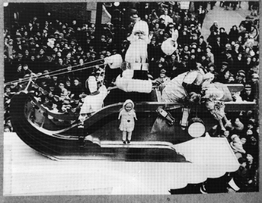 Le Père Noël salue de son traîneau lors d'un défilé du Père Noël dans la rue