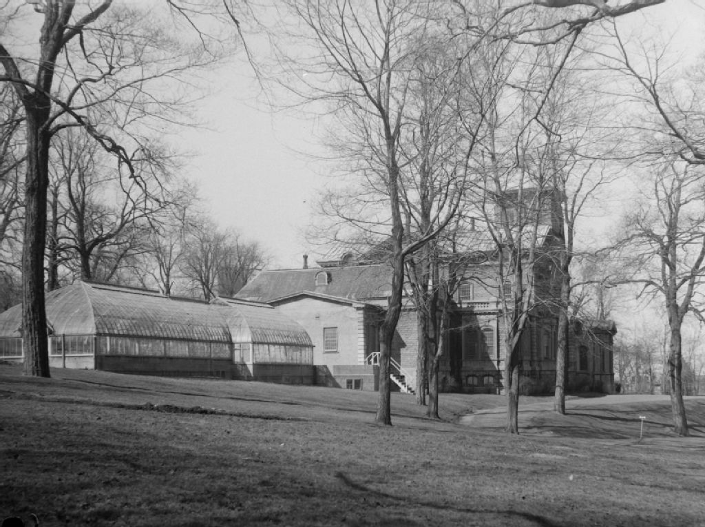 Nous voyons une demeure bourgeoise, appelée «Ravenscrag», avec une grande serre