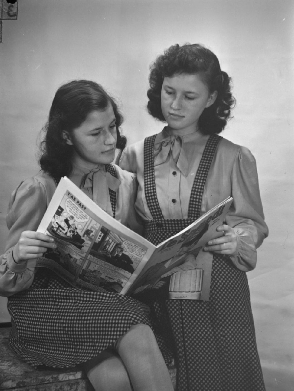 People. Twins Reading Le Samedi, 4 décembre 1946, Archives nationales à Montréal, Fonds Conrad Poirier, (06M,P48,S1,P13946), Poirier, Conrad.