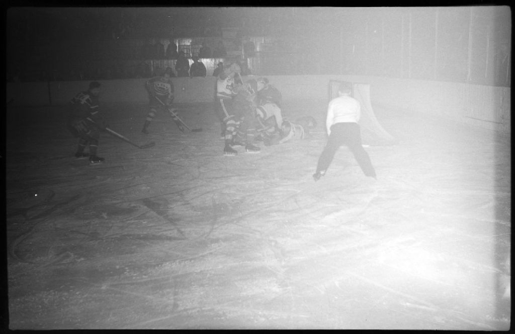 Hockey. Canadiens - Americans. 1st Period at American end, 11 décembre 1937, Archives nationales à Montréal, Fonds Conrad Poirier, (06M,P48,S1,P1409), Poirier, Conrad.