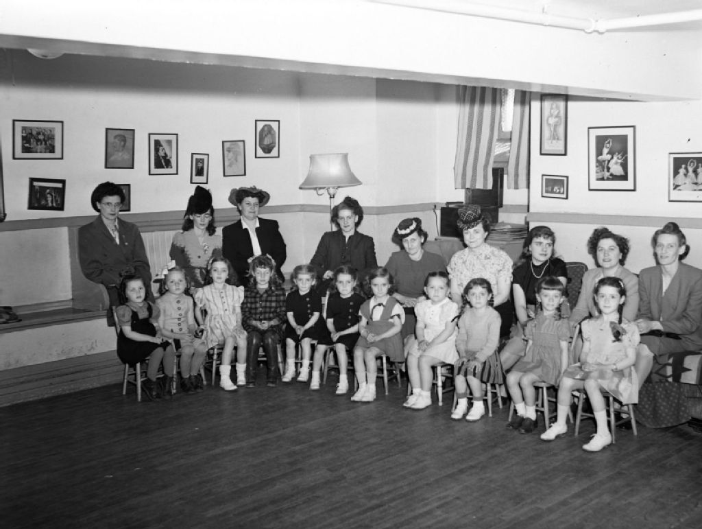 Des fillettes, observées par leur mère, suivent des cours d'élocution et de théâtre à l'école Petit-Monde de madame Yvonne Audet (née Duckett) située rue Saint-Hubert à Montréal