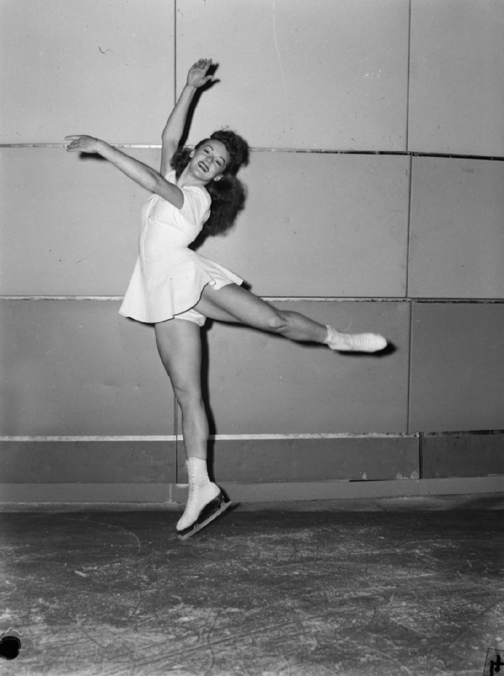 Skating. Donna Atwood, 10 décembre 1946, Archives nationales à Montréal, Fonds Conrad Poirier, (06M,P48,S1,P14270), Poirier, Conrad.