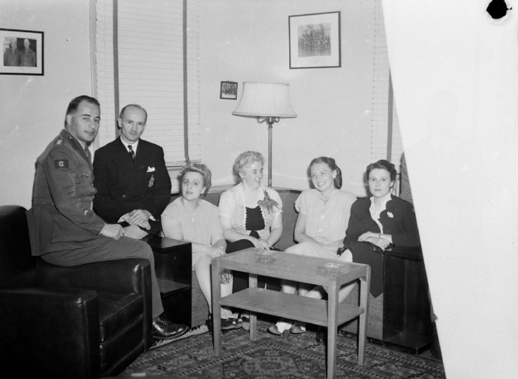 Nous voyons des invités, dont des militaires, à une réception offerte au Régiment de Châteauguay, avenue des Pins Ouest à Montréal