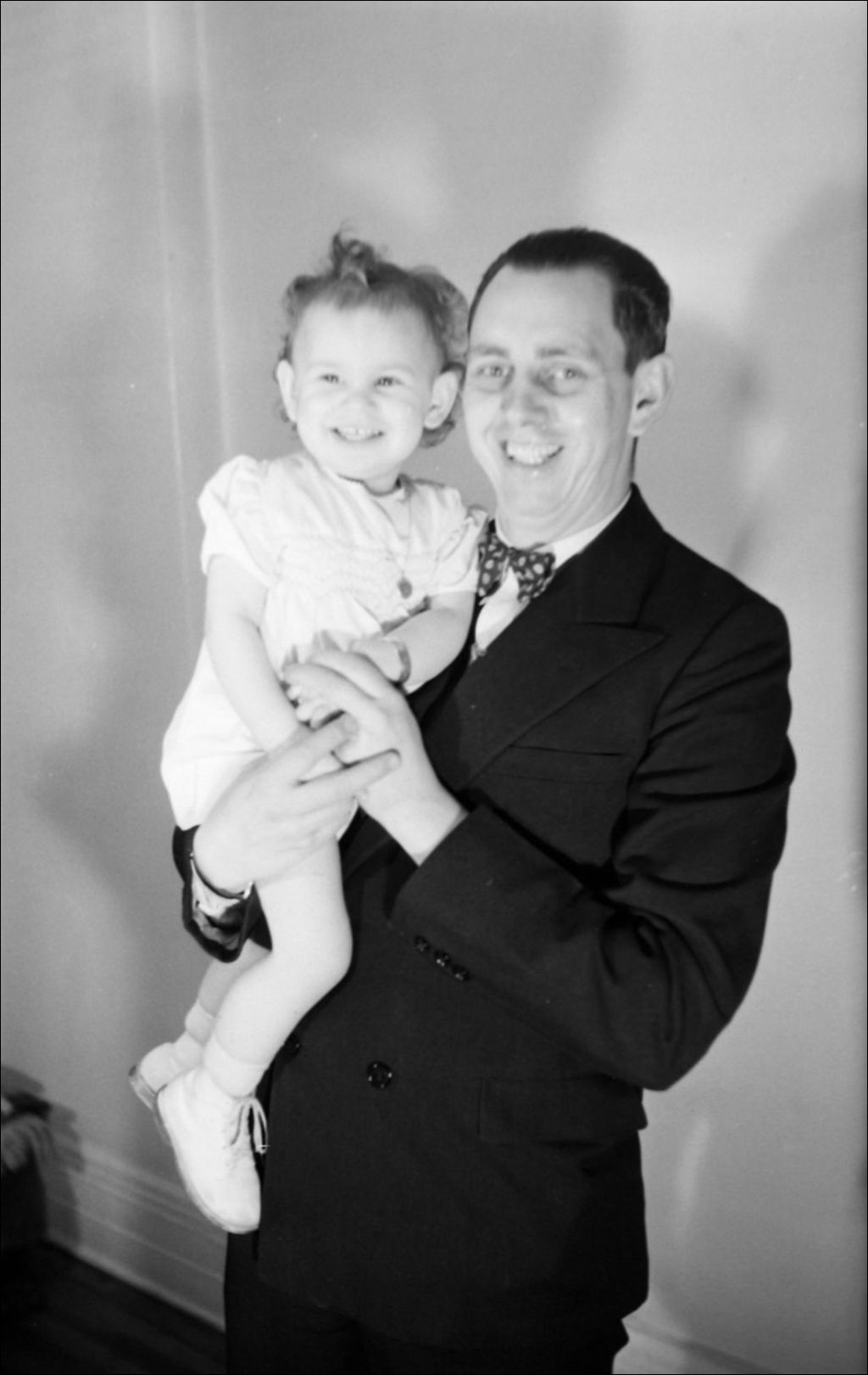 Monsieur M. S. Burns tient sa petite fille dans ses bras