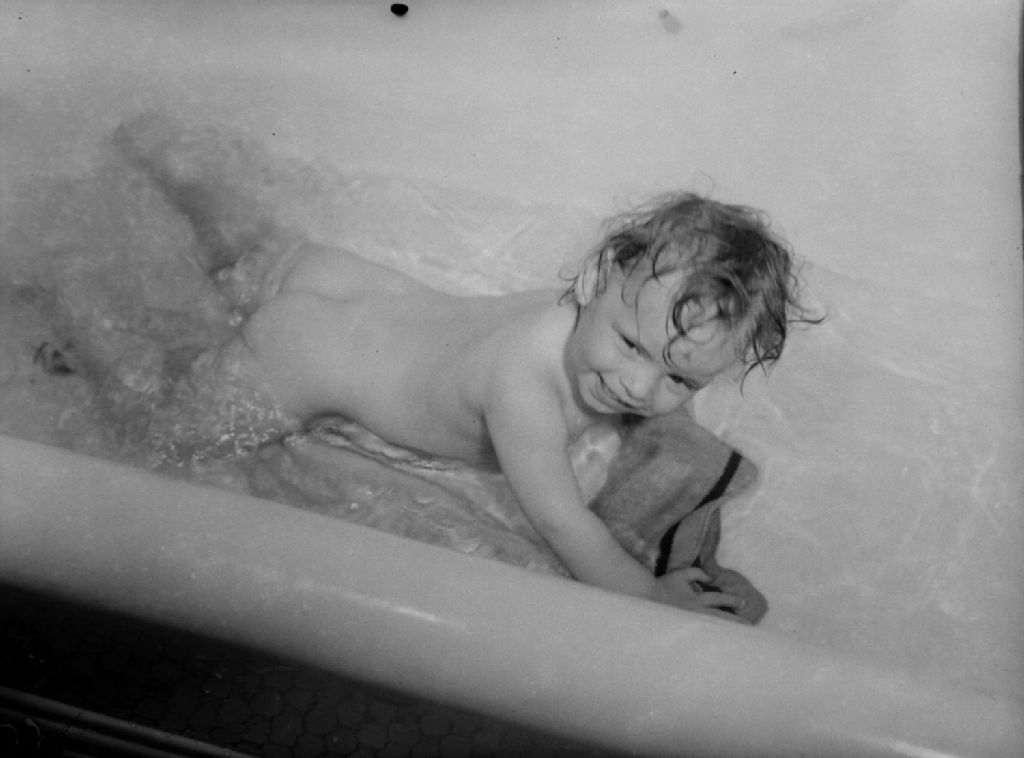 Le bébé des Dempsey prend un bain dans une baignoire