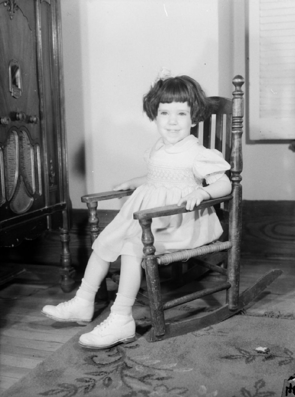 Lynn McCullough pose assise dans une berceuse