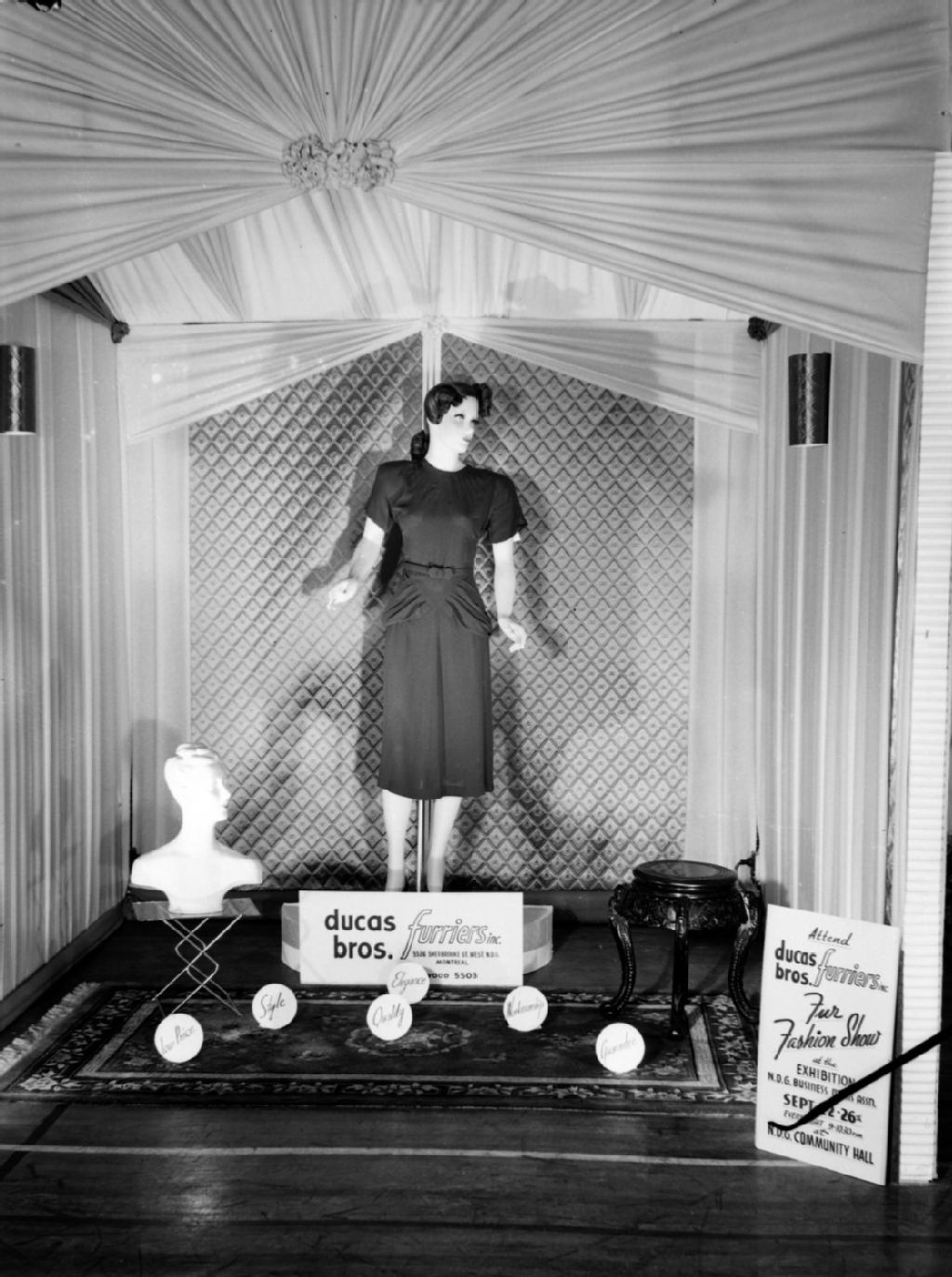 Kiosque de la compagnie Ducas Bros. Furriers de la rue Sherbrooke à Montréal