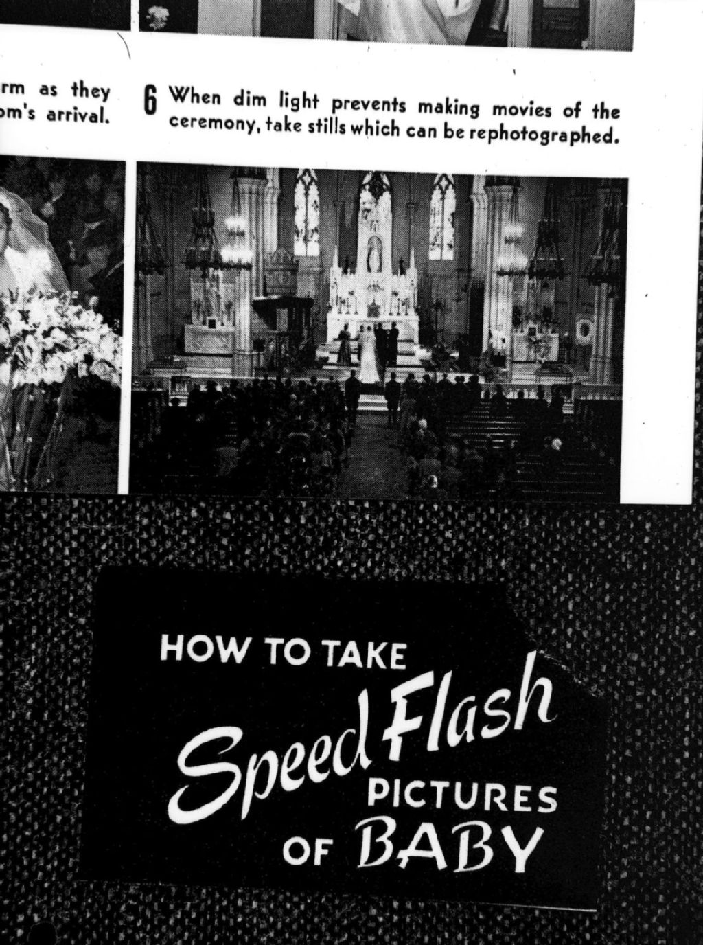 Cérémonie de mariage dans l'église et annonce avec la mention «How to take Speed Flash Pictures of Baby»