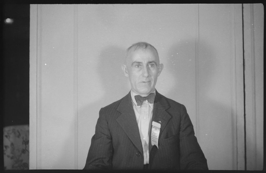 À la Bell Telephone Pioneer Convention, nous voyons un homme portant un costume de ville. Nous remarquons son noeud papillon et son ruban épinglé au revers de son veston