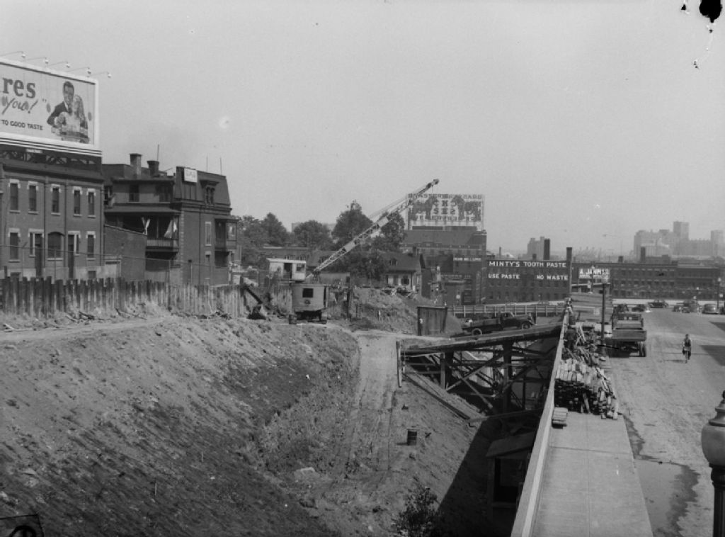 Excavation pour la construction des infrastructures de la Canadian National Railway (C.N.R.)