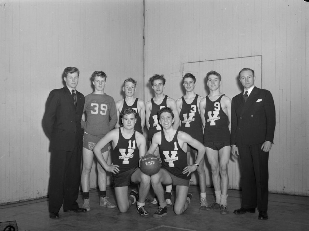 Équipe masculine de basketball dans le gymnase du Young Men's Christian Association (YMCA) de Westmount