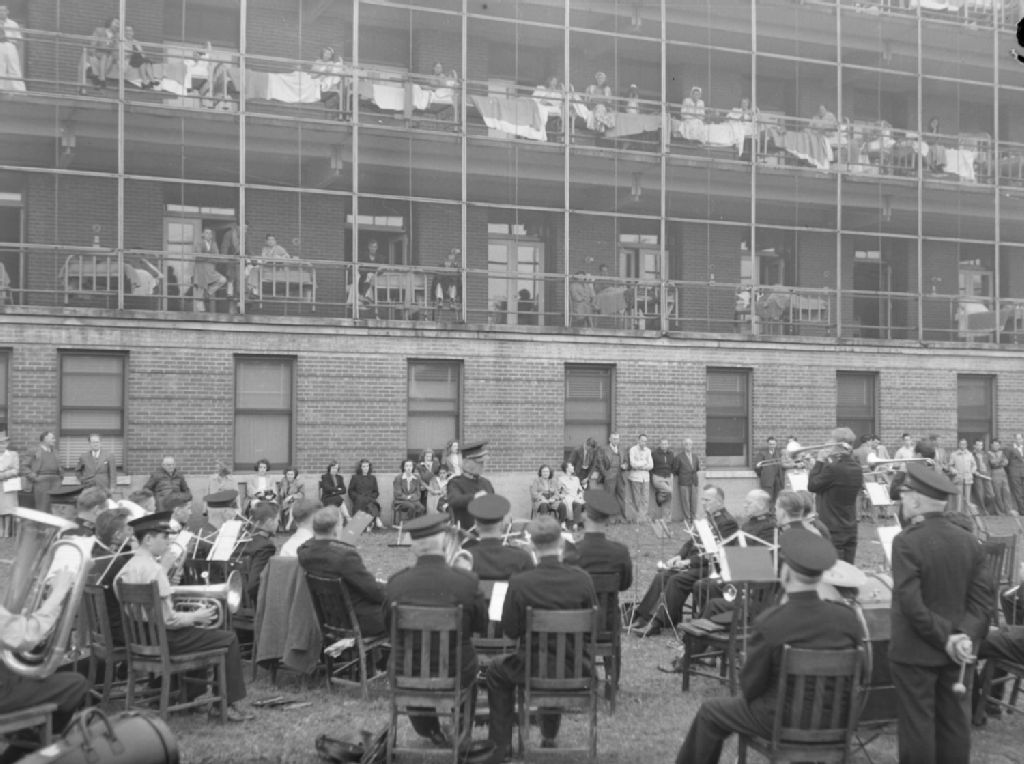 Les musiciens de l'Armée du Salut donnent un concert en plein air pour les malades d'un hôpital de Sainte-Agathe dans les Laurentides