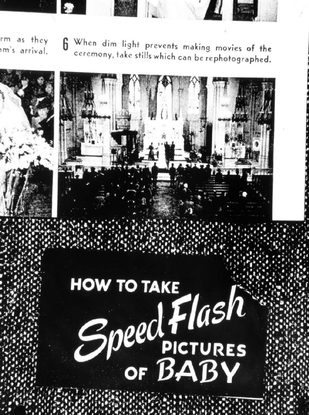 Annonce portant l'énoncé «How to take Speed Flash Pictures of Baby» et copie d'une photographie de mariage