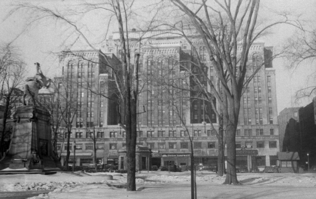 View. Dominion Square Bldg, 15 janvier 1947, Archives nationales à Montréal, Fonds Conrad Poirier, (06M,P48,S1,P15994), Poirier, Conrad.